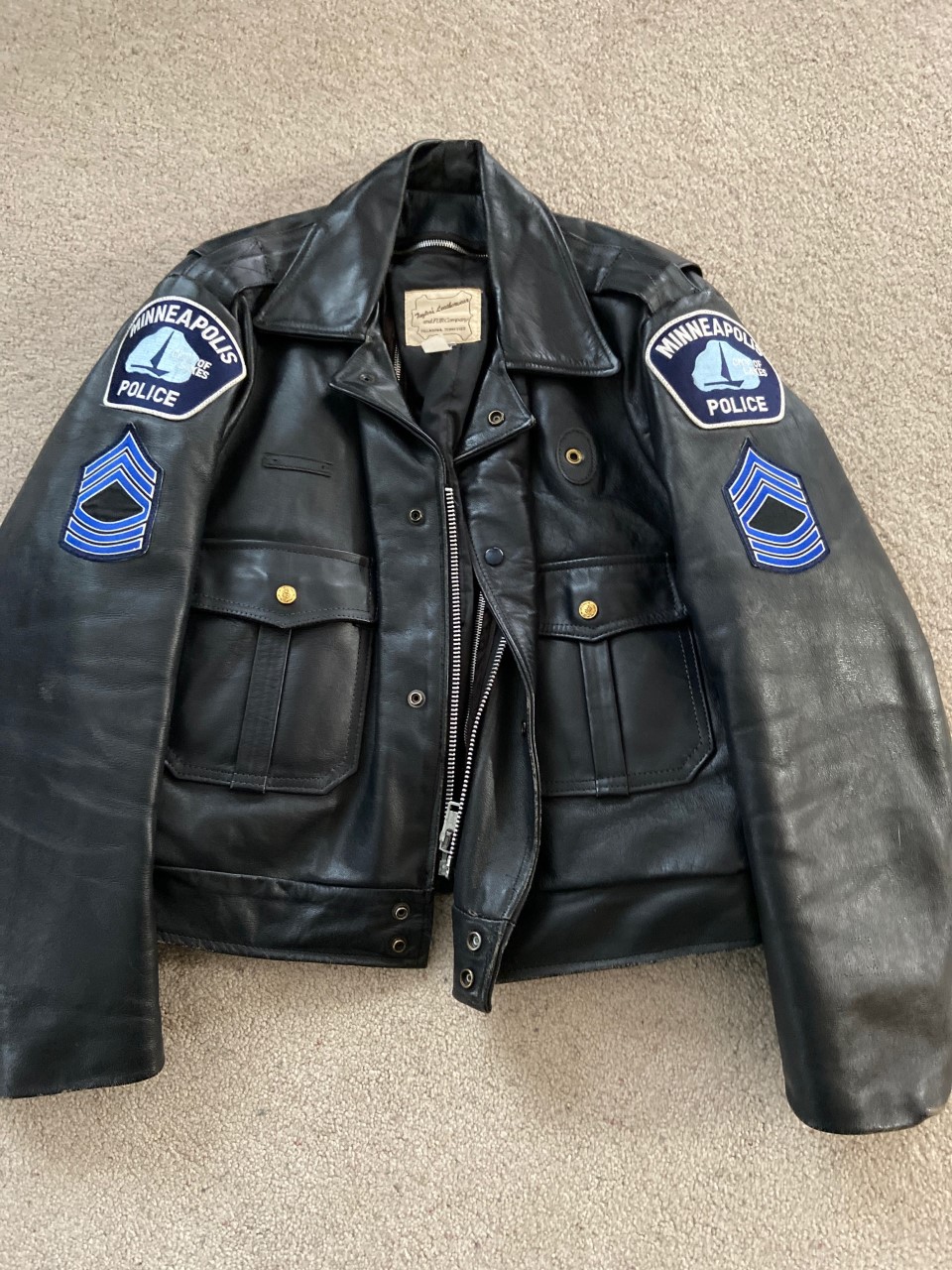 Retired Sgt. Chuck Peter is selling two leather jackets